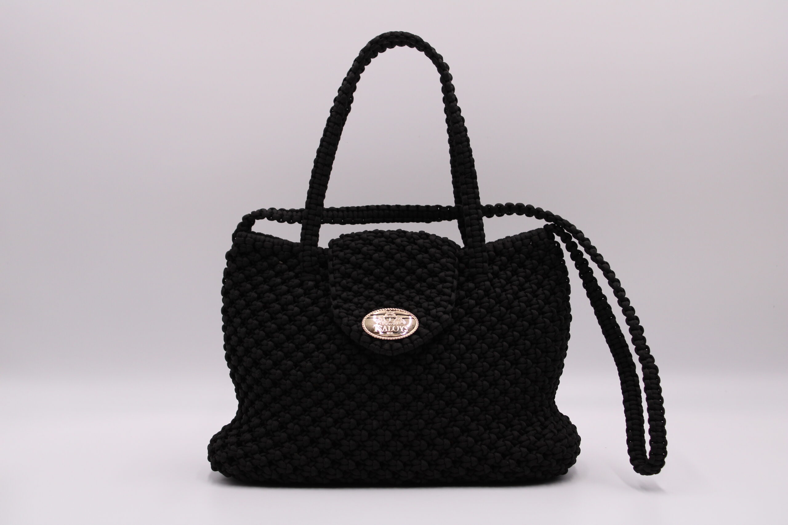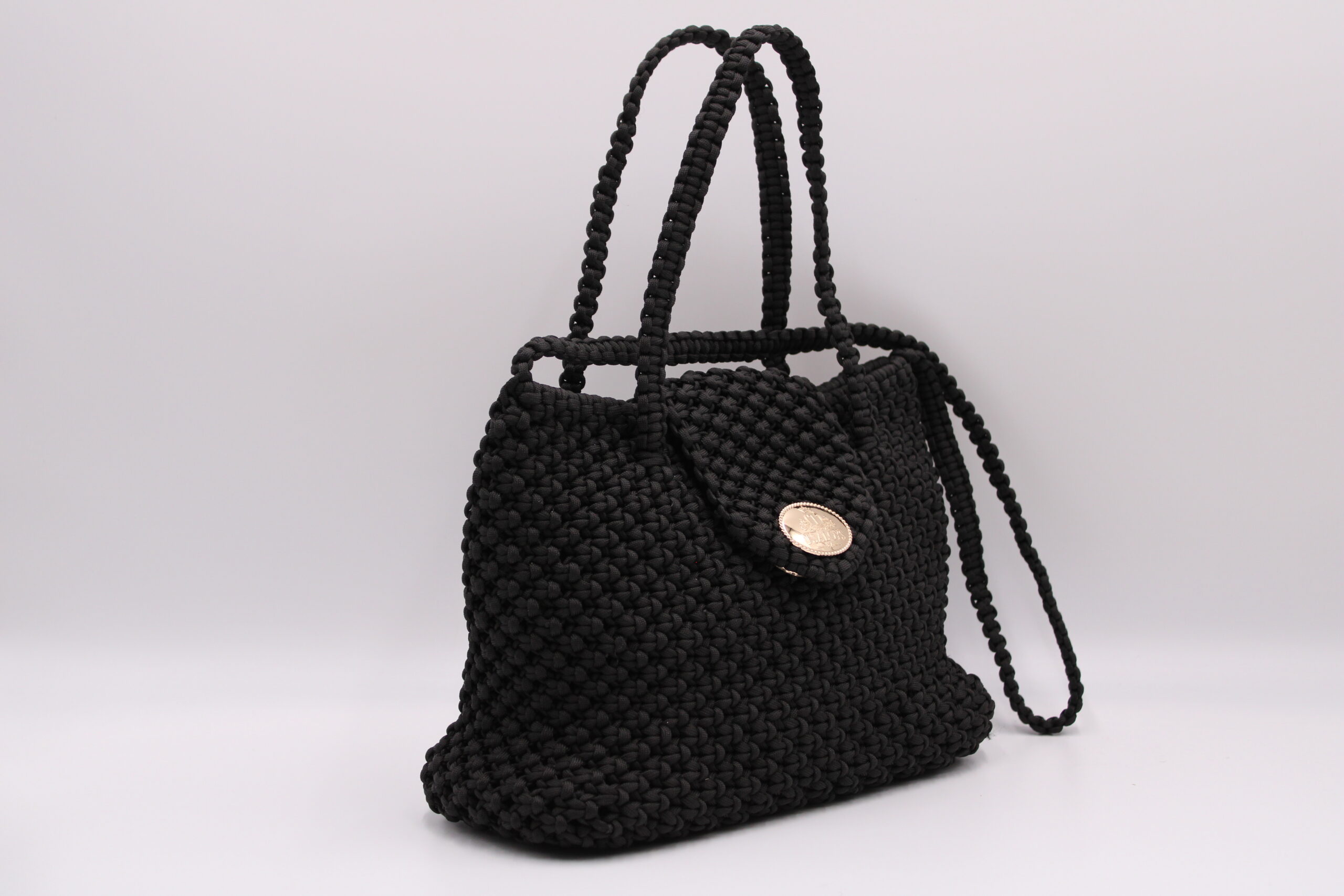 BLACK EBENE BAG 100% HAND-WOVEN WITH THE SMALL INTERNAL BAG AND GOLDEN METAL CHAIN