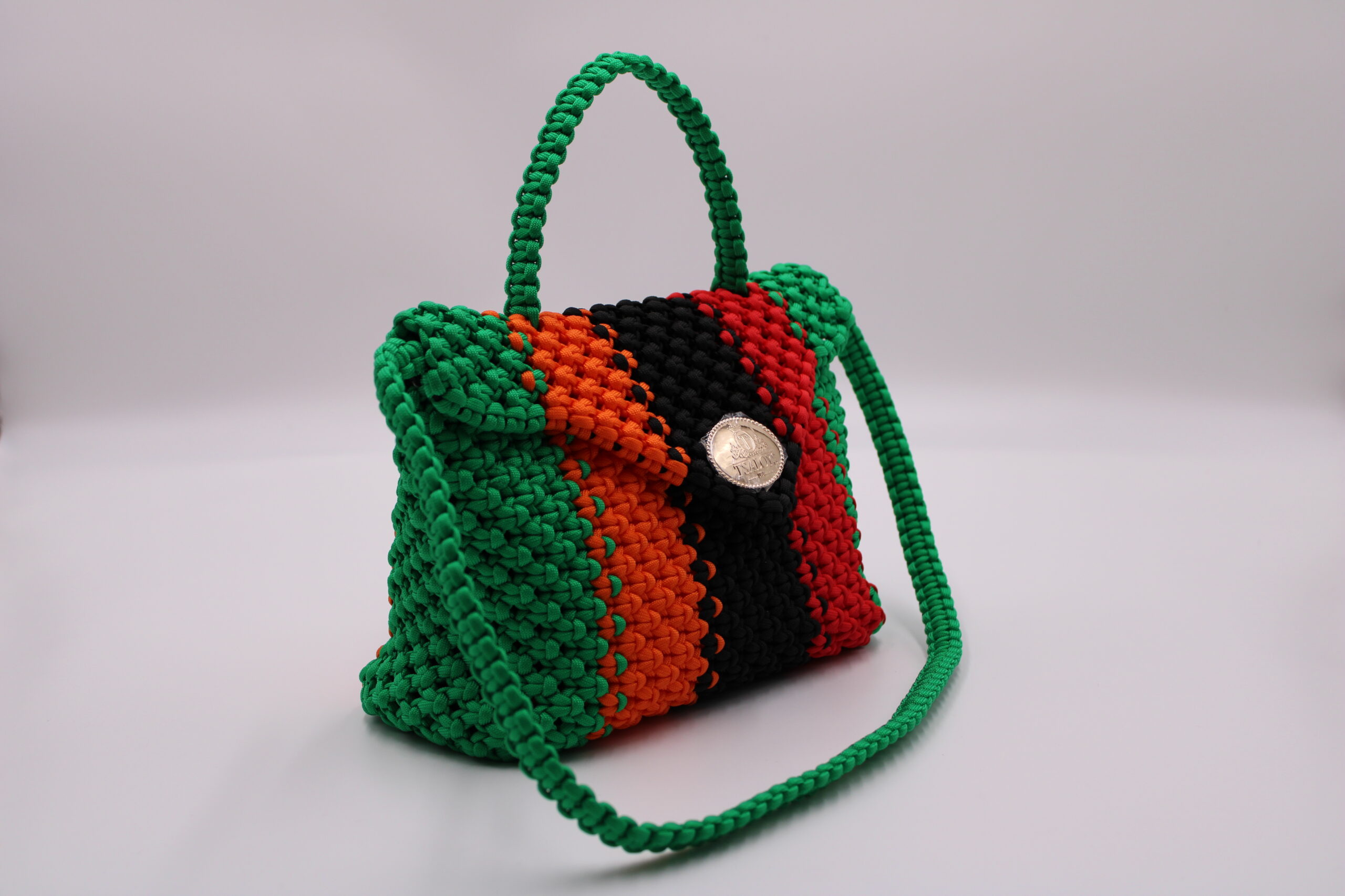 TOTE BAG BLACK AND WHITE COLOR 100% HAND-WOVEN WITH THE SMALL INTERNAL POCKET