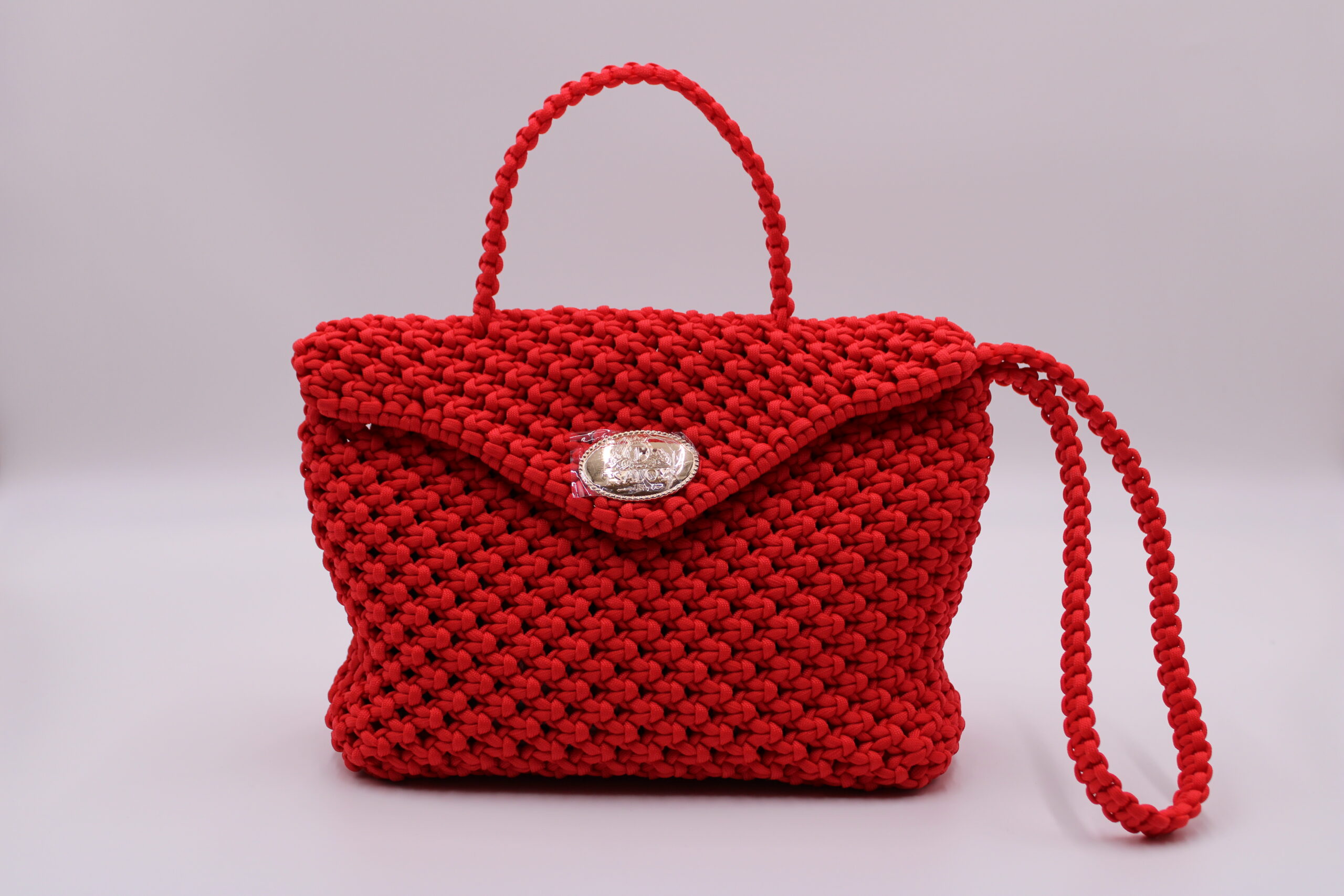 TOTE BAG ORANGE COLOR WITH CLOSED TOP 100% HAND-WOVEN WITH THE SMALL INTERNAL BAG